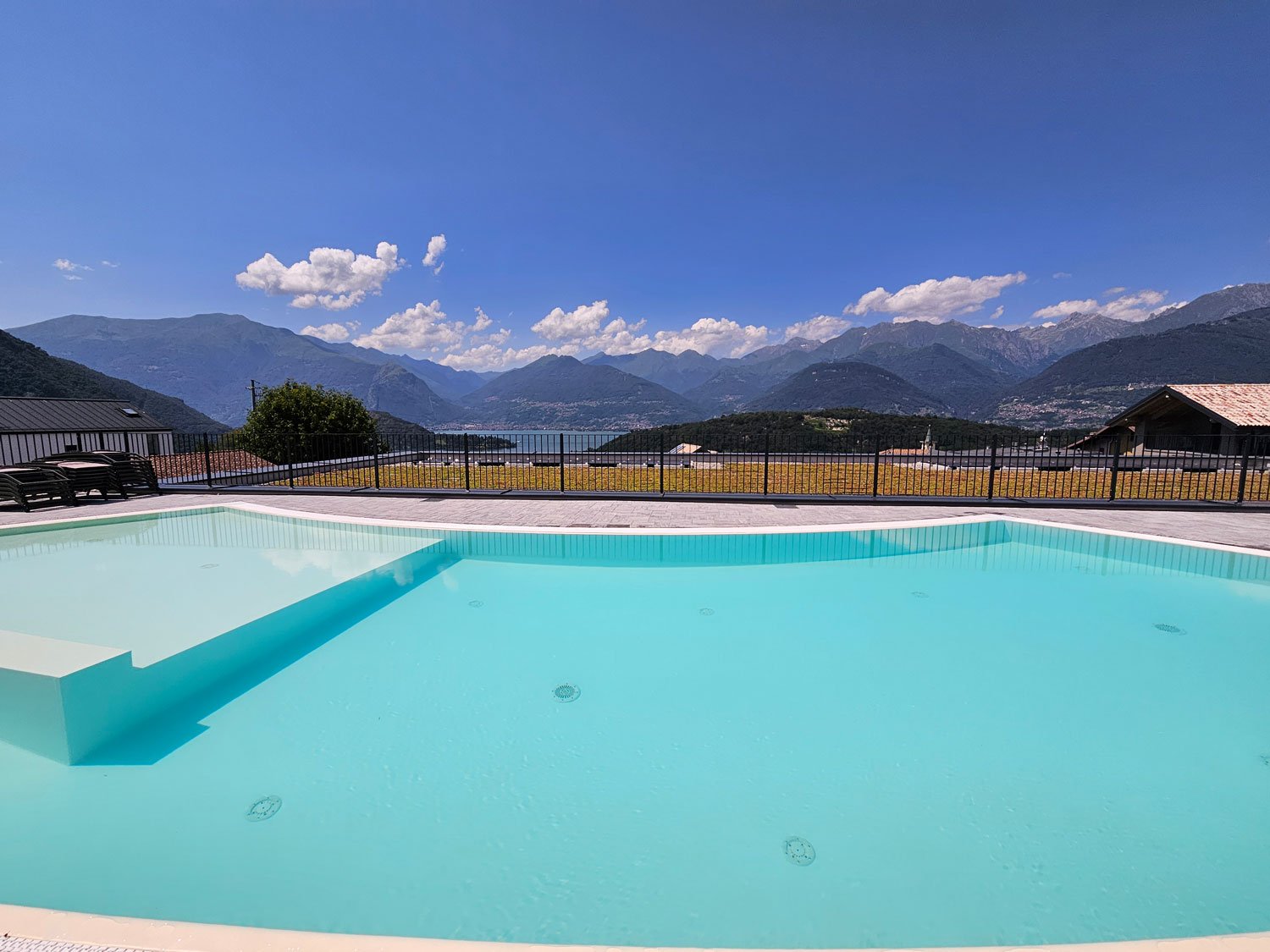Nuovissimo appartamento elegante e moderno all'ultimo piano di una residenza di nuova costruzione con piscina in comune e splendida vista sul lago.