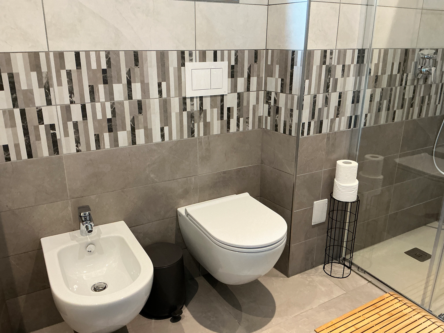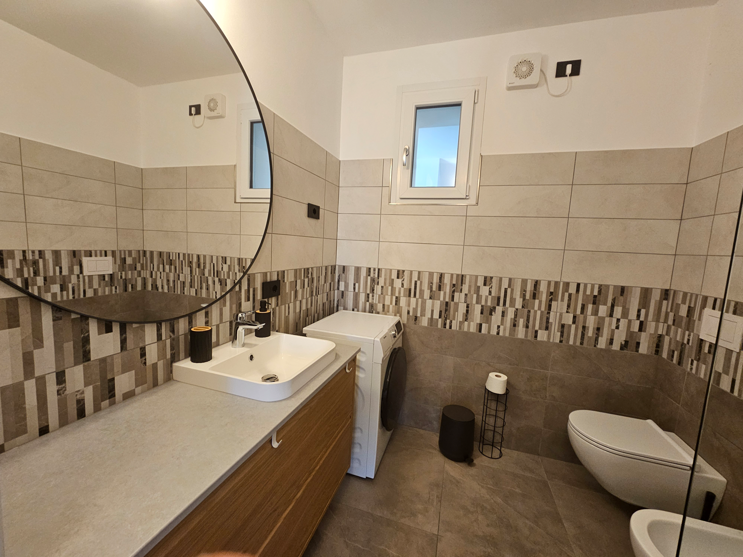 Sono presenti due bagni dal design moderno, completi di wc, bidet, docce rinfrescanti in entrambi e lavatrice.