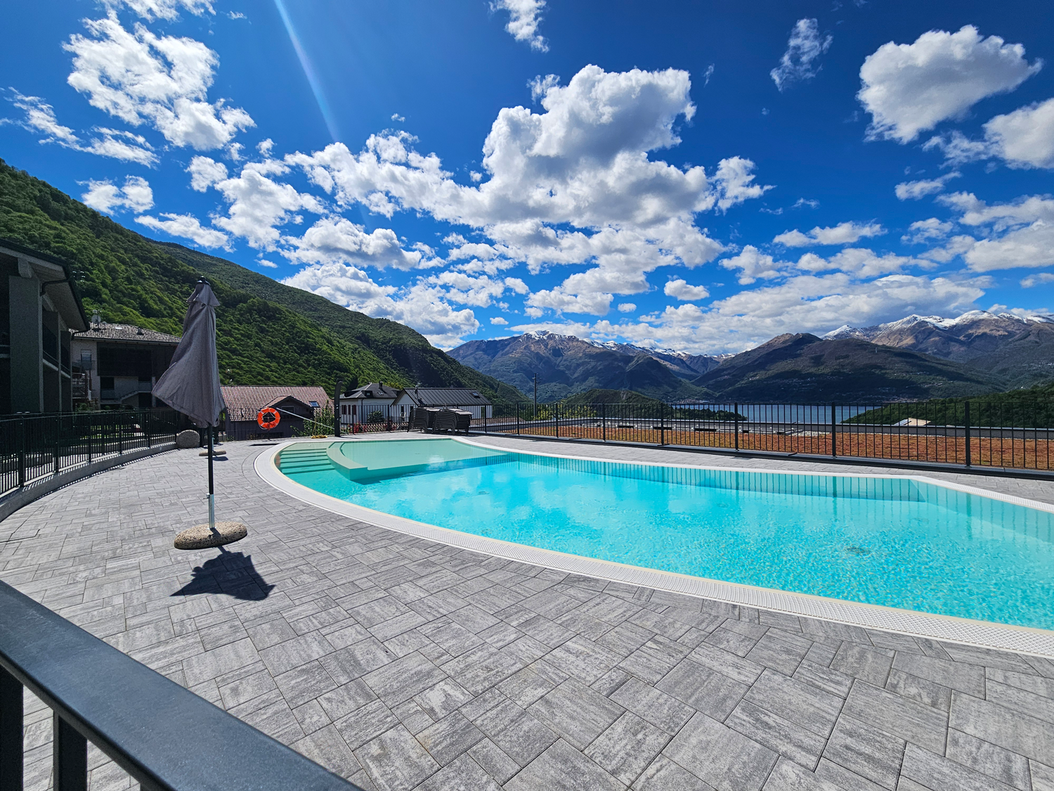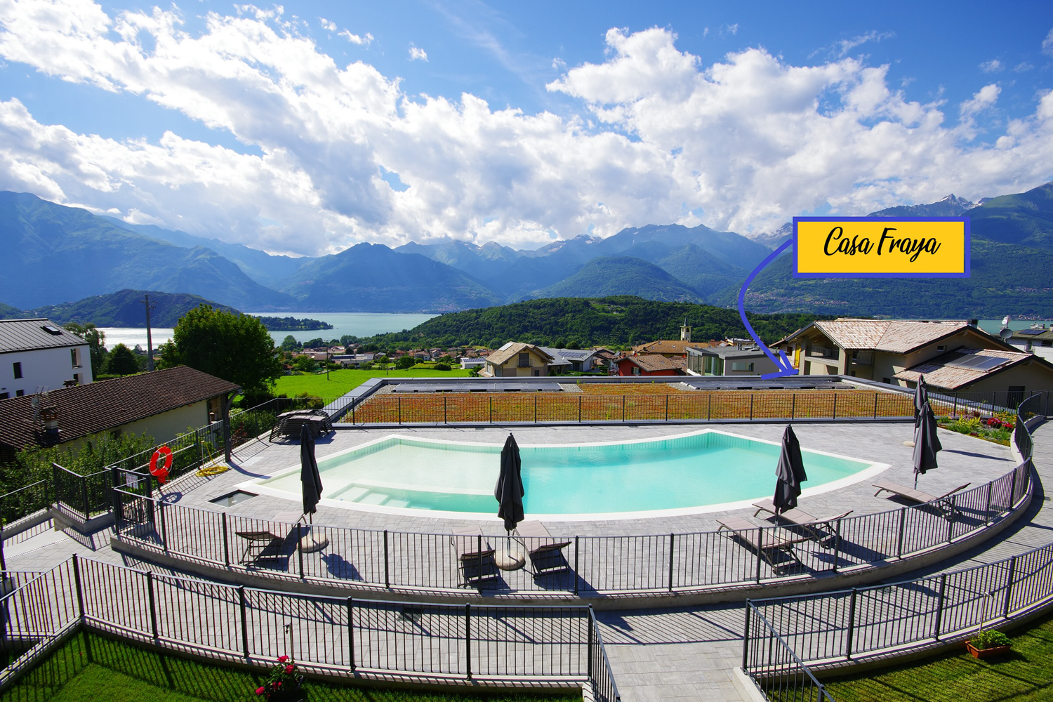 Avrai facile accesso alla piscina con vista lago situata nel residence sopra il nostro appartamento con vista lago (piscina aperta da maggio a settembre).