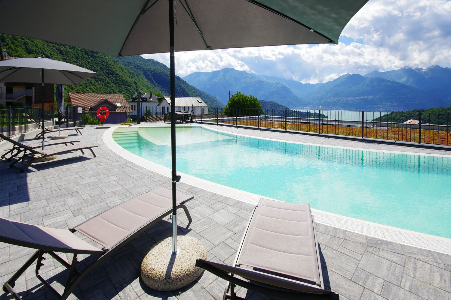Nuovissimo appartamento elegante e moderno all'ultimo piano di una residenza di nuova costruzione con piscina e splendida vista sul lago.