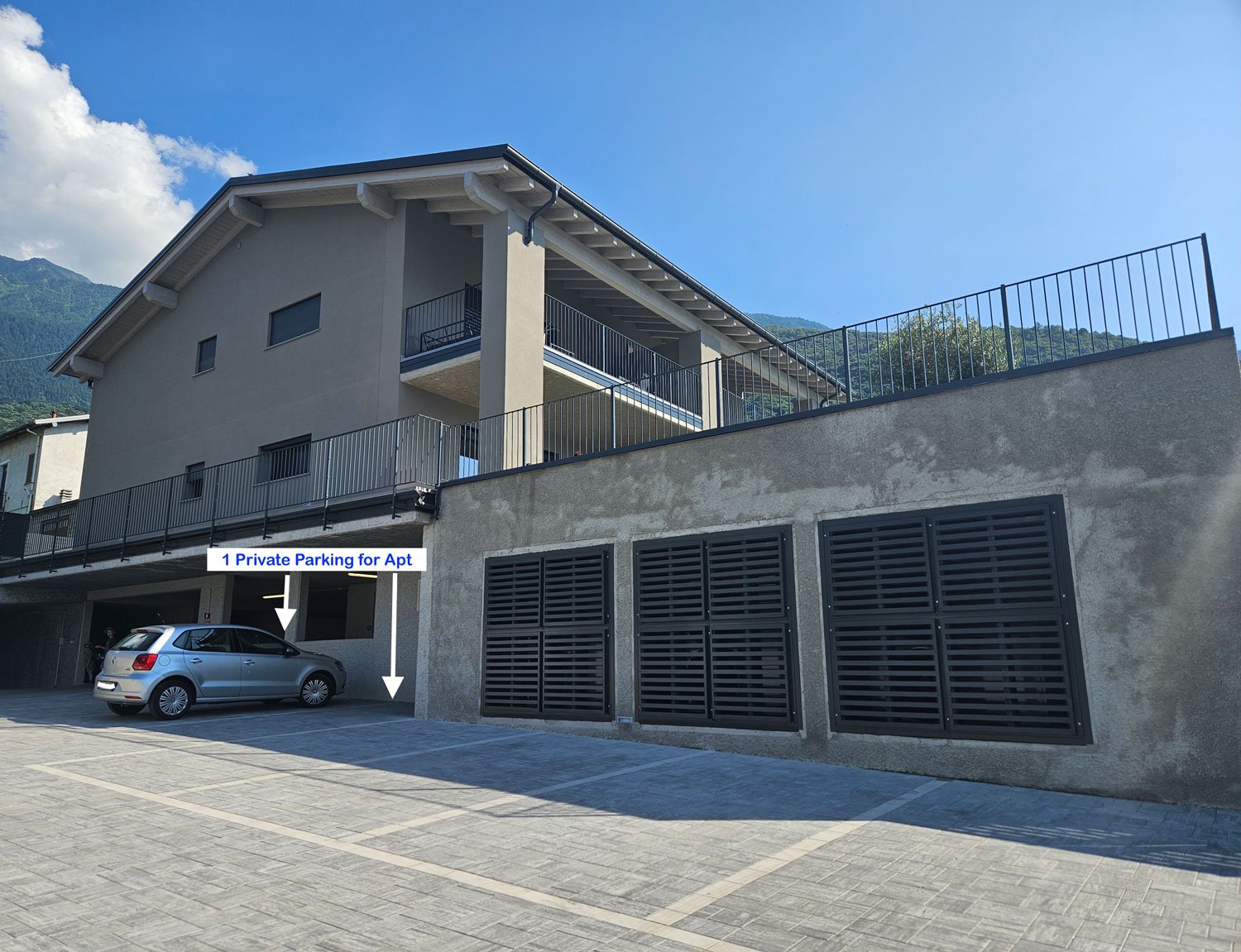 Gli ospiti hanno accesso a un garage privato con caricabatterie per veicoli elettrici (extra da pagare al check out in base ai consumi) e a un posto auto privato all'esterno del residence.