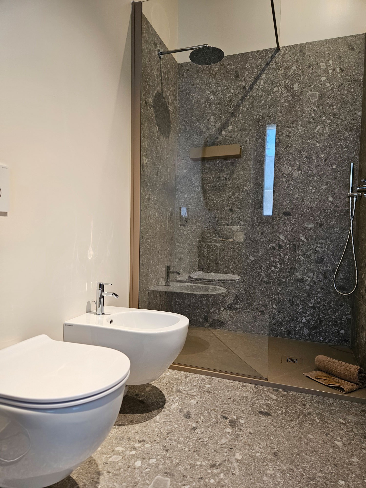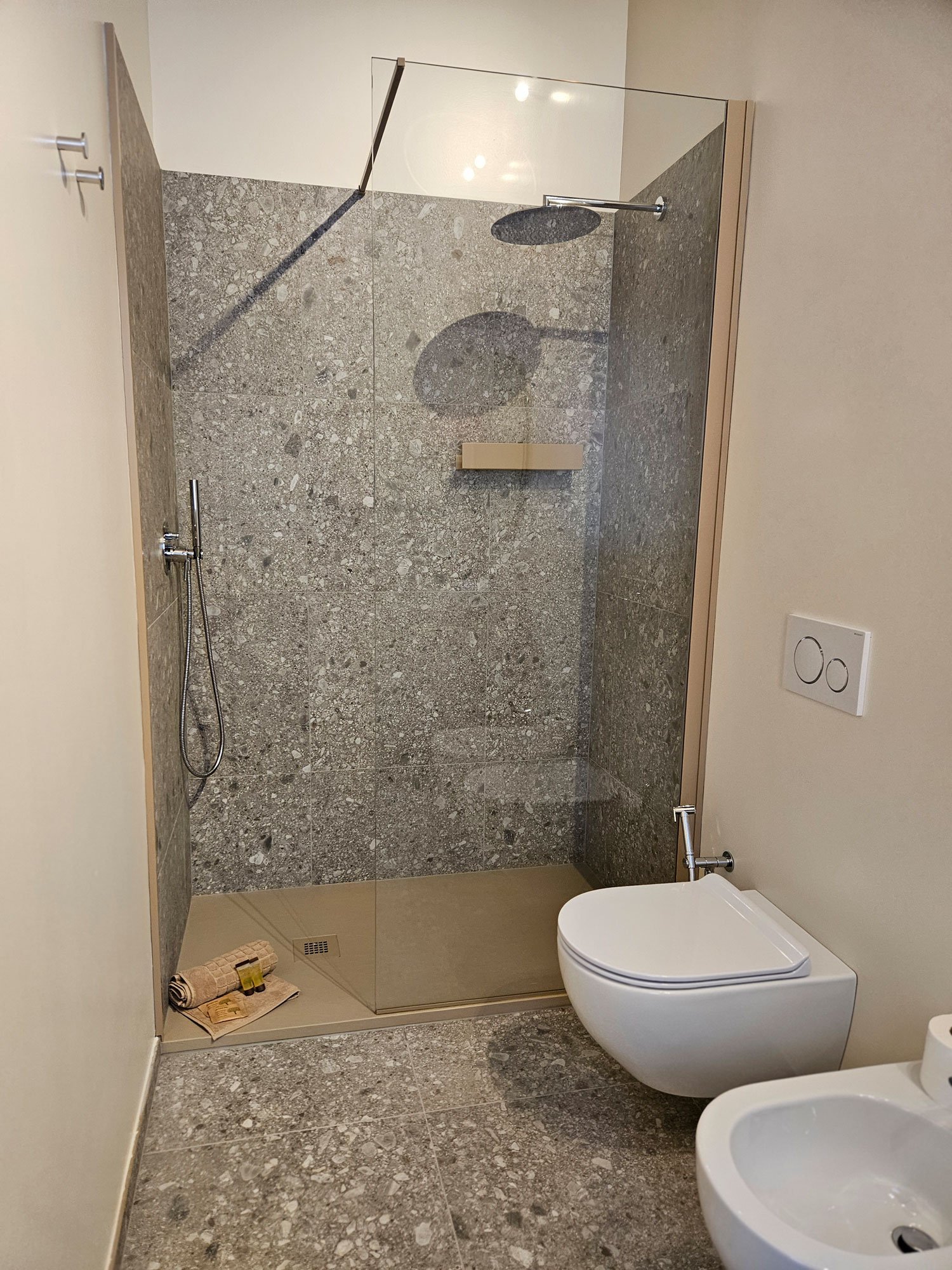Una camera doppia e una camera matrimoniale (con TV) nel cuore della casa, ciascuna con bagno privato con doccia.