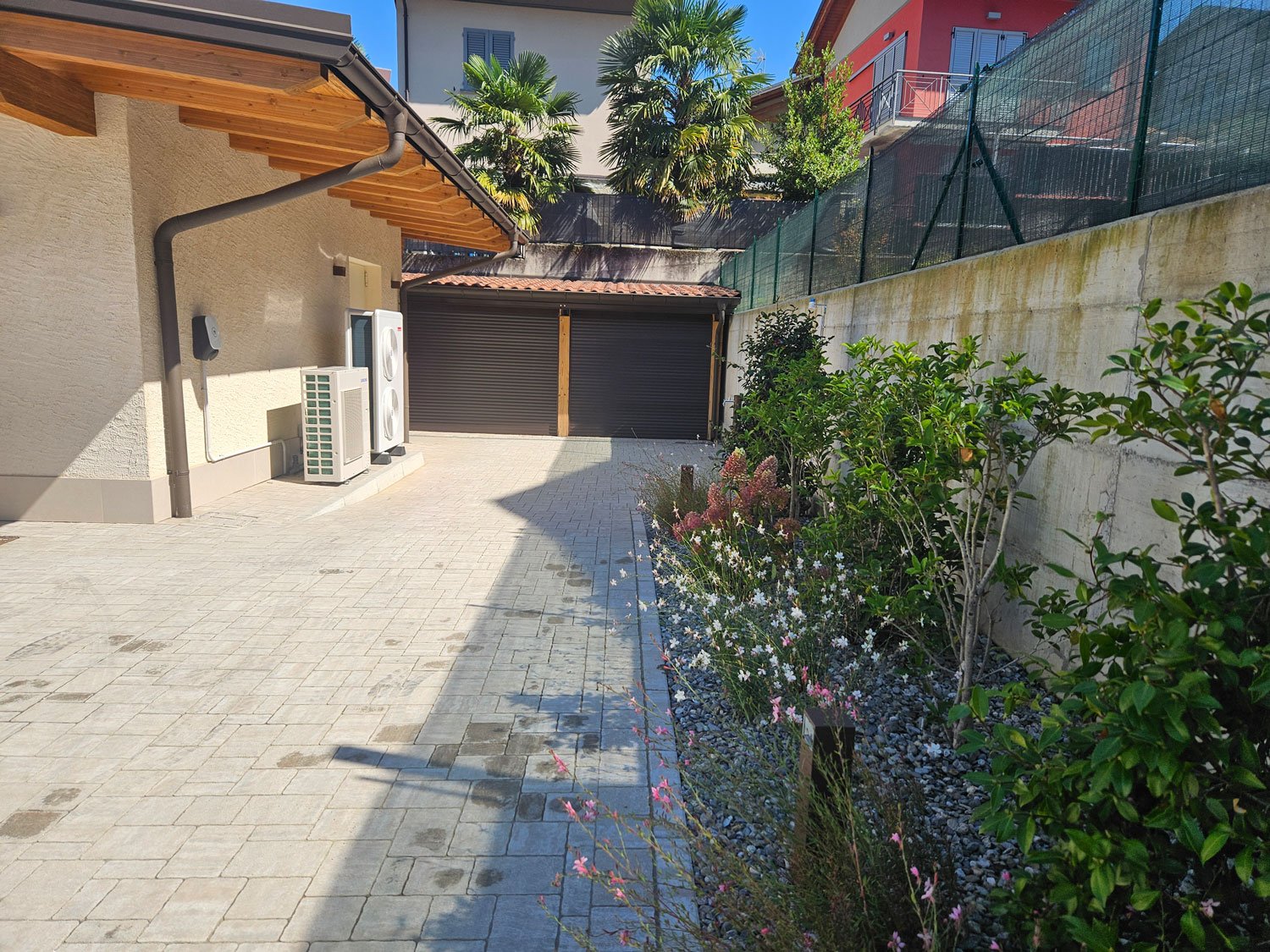 Sul retro della villa c'è un cantiere in fase di finitura, lavori in corso: finiture interne.